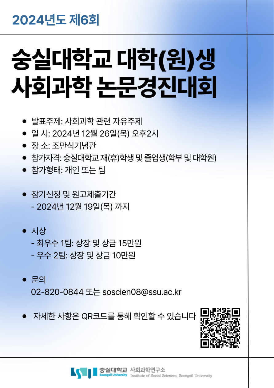 제6회 숭실대학교 대학(원)생 사회과학 논문경진대회
