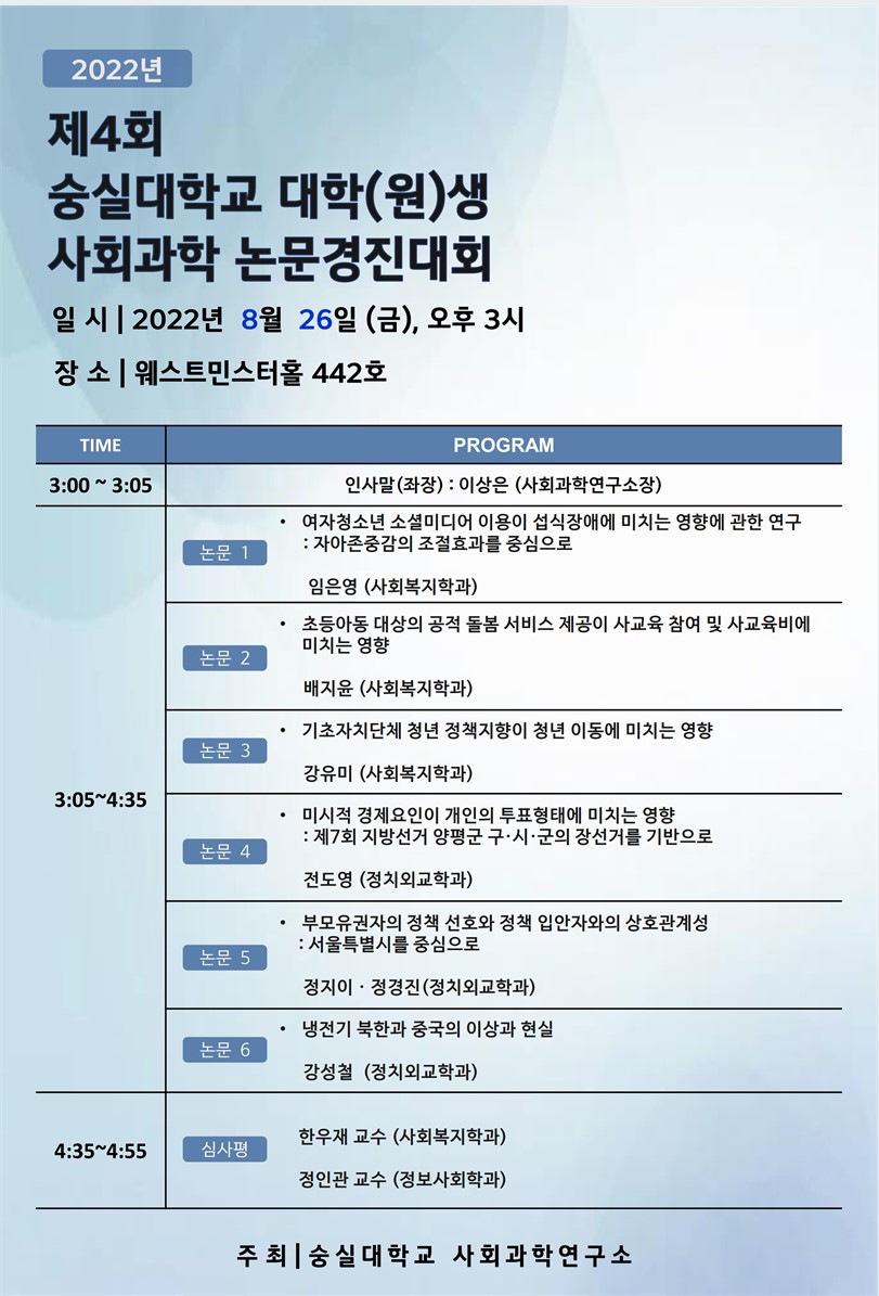 제 5회 숭실대학교 대학(원)생 사회과학 논문경진대회